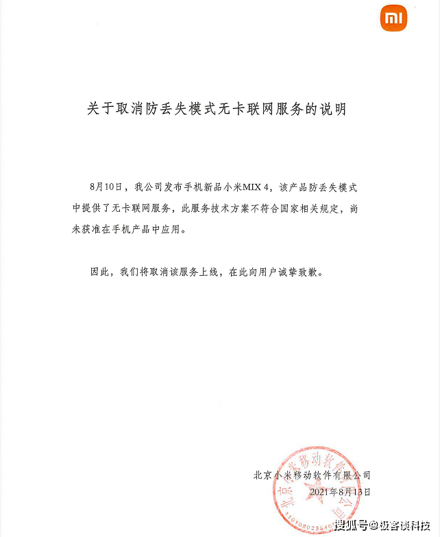 就在昨天,小米公司发布了这样一则声明《关于取消防丢失模式无卡联网服务的说明》。